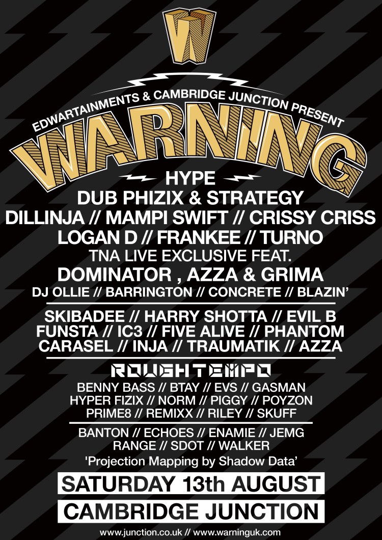 This is a WARNING! The King of D&B club nights returns to Cambridge on 13th August with an all star D&B line up featuring DJ Hype, Dub Phizix & Strategy, Mampi Swift, Dillinja, Logan D, Frankee & more! Of course I will also be playing back there.