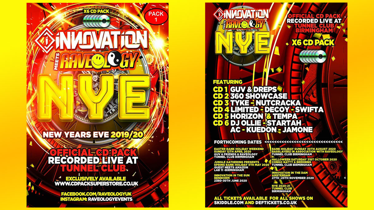 CD Packs from the Innovation meets Raveology event on New Years Eve are now on sale. Recorded live at The Tunnel Club on 31/08/2019, these packs feature sets from artists such as DJ Guv, Tyke, Nicky Blackmarket & Profile, Upgrade, Basslayerz, DJ Limited & me! Buy on Amazon