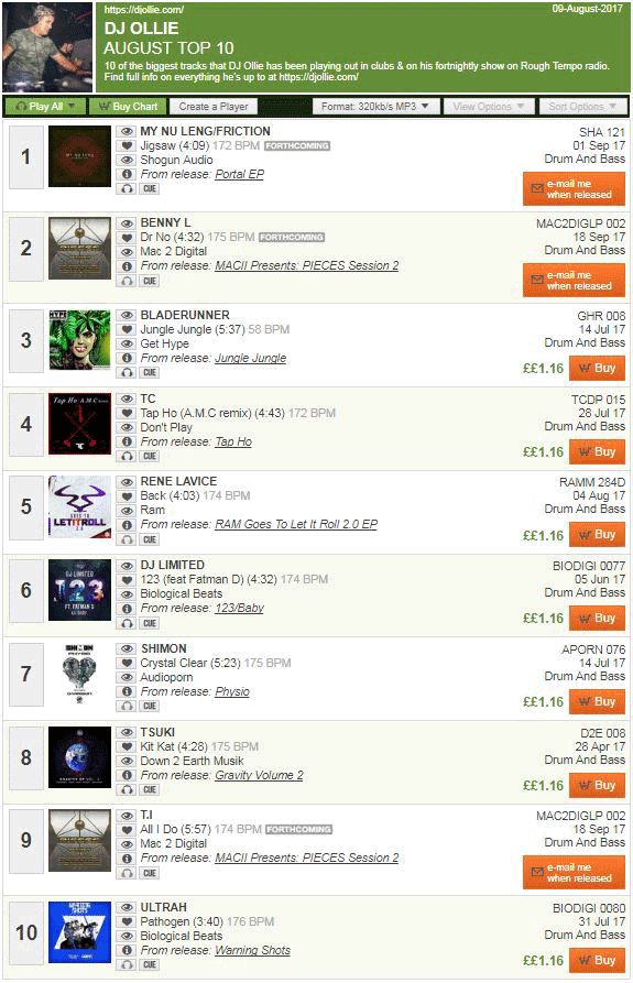 To coincide with my latest release becoming exclusively available on JunoDownload, I’ve compiled a chart of my 10 current favourite drum and bass tunes